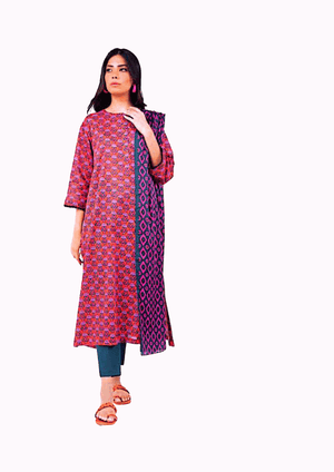 Suit - UnRed & Teal Printed Khaddar 3-Piecstitched