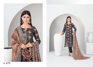 Paired with a beautifully designed digital printed shawl-style dupatta in warm chestnut tones and classic geometric motifs, this suit offers the perfect balance of sophistication and comfort for the winter season. The premium khaddar fabric ensures warmth, durability, and an elegant fall, making it ideal for everyday wear, office outings, and casual gatherings.