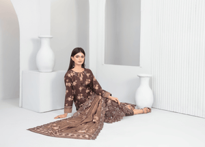 Experience winter elegance with our Chocolate Brown Floral Embroidered Khaddar 3 Piece Suit, crafted for women who prefer warm, rich tones and premium stitched outfits. The shirt features a deep brown base adorned with soft floral patterns and intricate embroidered detailing along the border, giving the outfit a refined and graceful look.