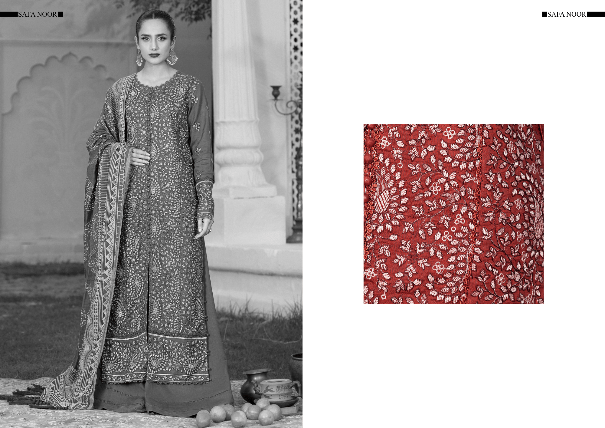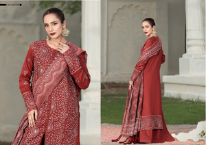 Elevate your winter wardrobe with this luxurious crimson embroidered 3-piece suit, crafted for women who adore elegance with comfort. Designed in rich, deep crimson tones, this outfit features dense contrast embroidery that instantly stands out—perfect for intimate winter dinners, festive gatherings, or semi-formal events.