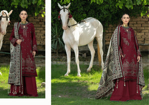 Embrace the sophistication of the season with this exquisite Deep Maroon 3-piece ensemble. Perfectly tailored for semi-formal winter occasions, this outfit balances the depth of rich colors with the lightness of intricate weaving.