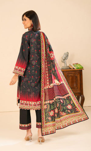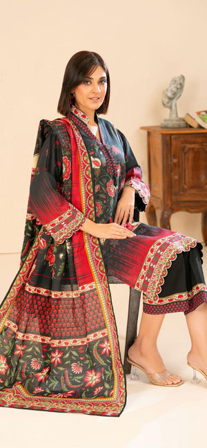 Dramatic Floral Printed Khaddar 3-Piece Unstitched Suit | Black and Red