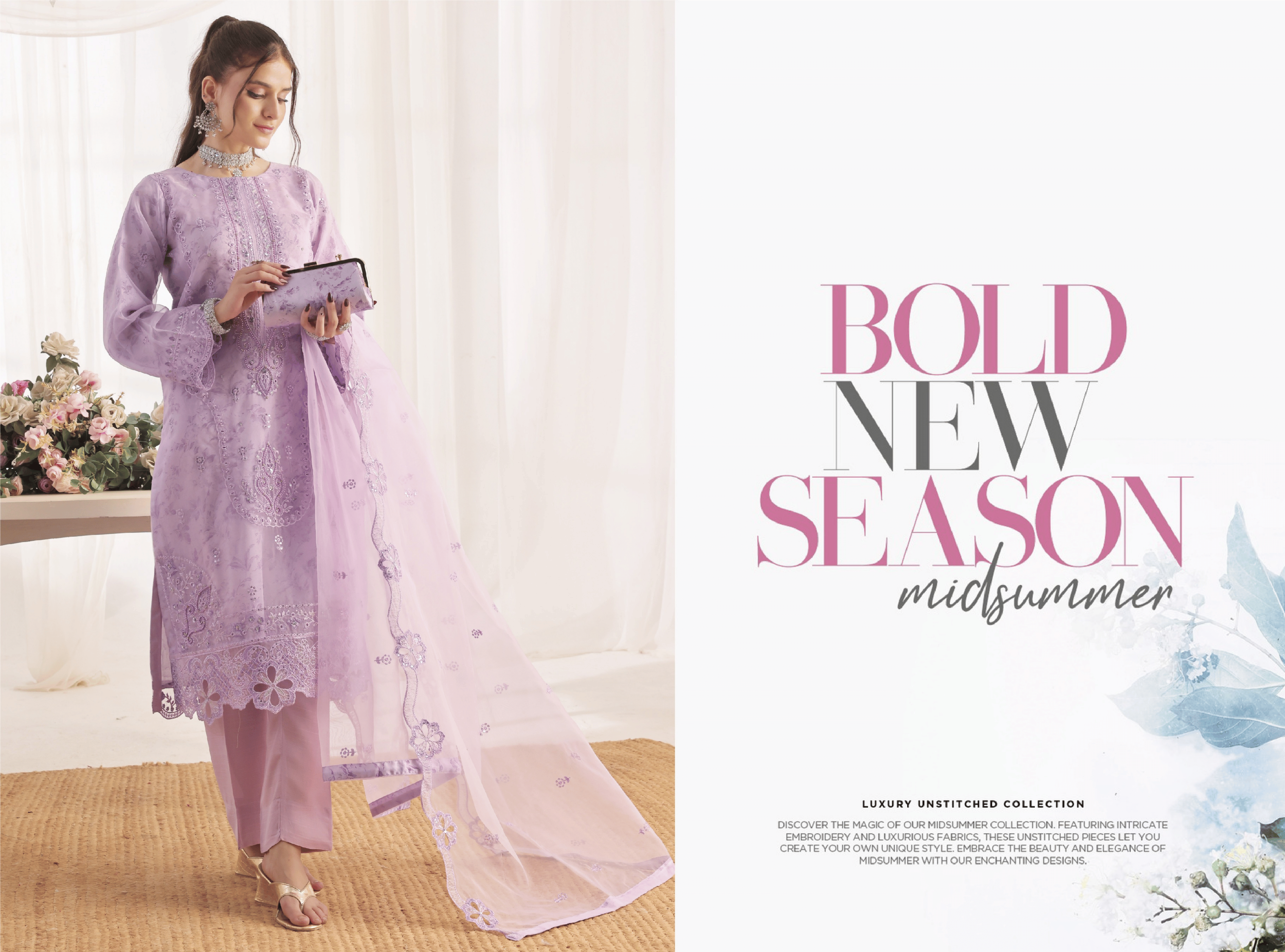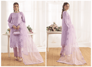 Discover timeless sophistication with our Elegant Embroidered Lilac Organza 3-Piece Suit. This premium quality ensemble is designed for discerning fashionistas, crafted from luxurious organza fabric that offers a graceful drape and subtle sheen. Perfect for adding a touch of enchantment to your special occasions.