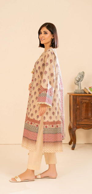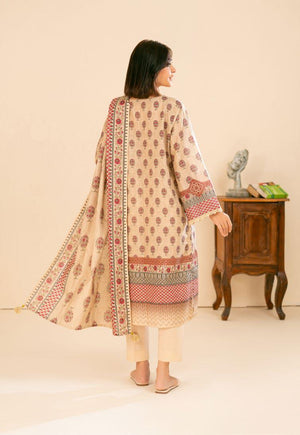 Elegant Ethnic Printed Khaddar 3-Piece Unstitched Suit | Beige & Red