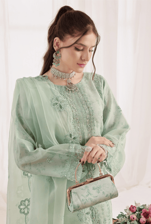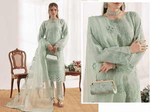Elevate your wardrobe with our luxurious Premium Embroidered Mint Organza 3-Piece Suit, a masterpiece of traditional elegance and contemporary style. Crafted from the finest quality organza, this stunning ensemble features intricate, delicate embroidery that exudes sophistication and charm.
