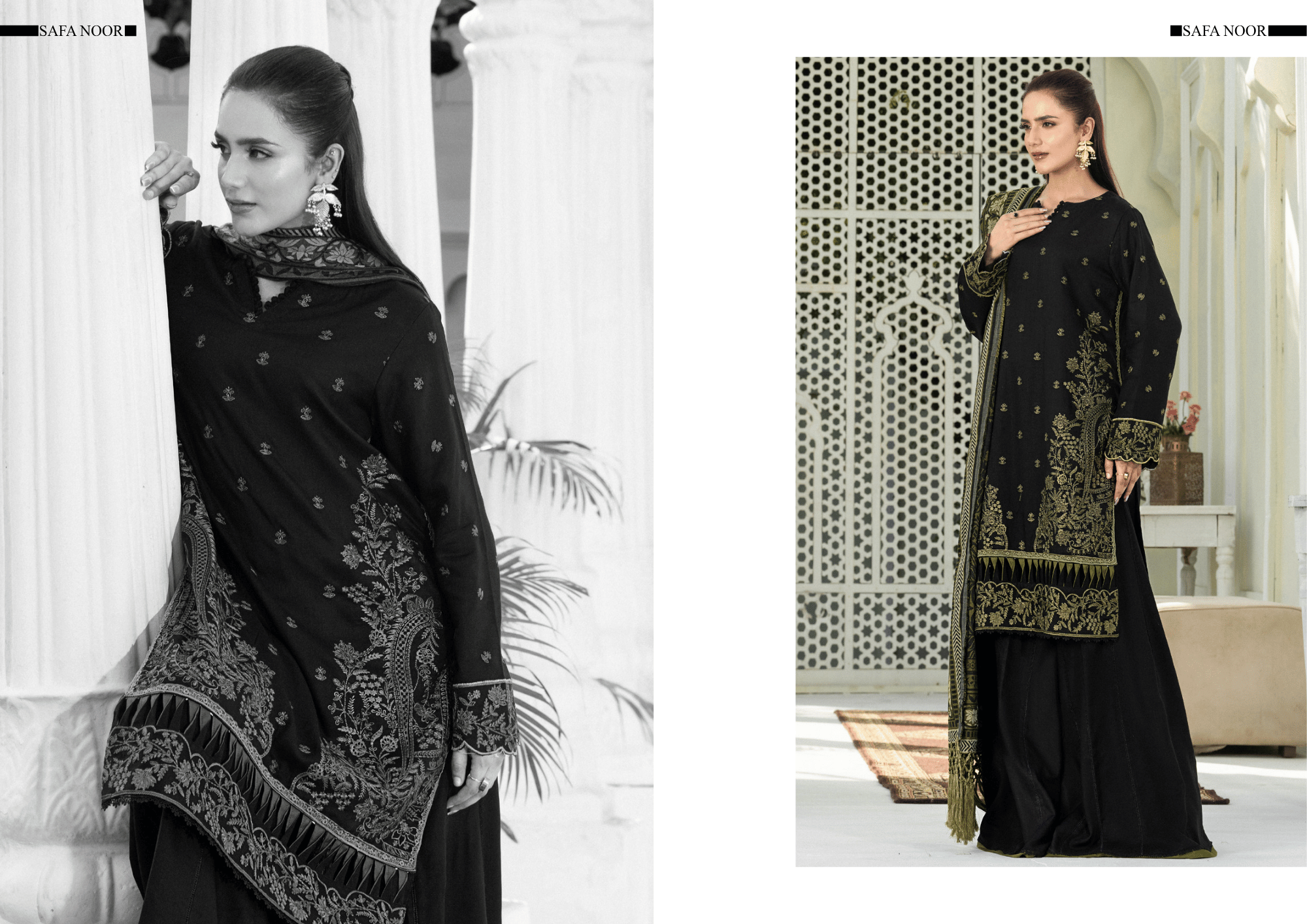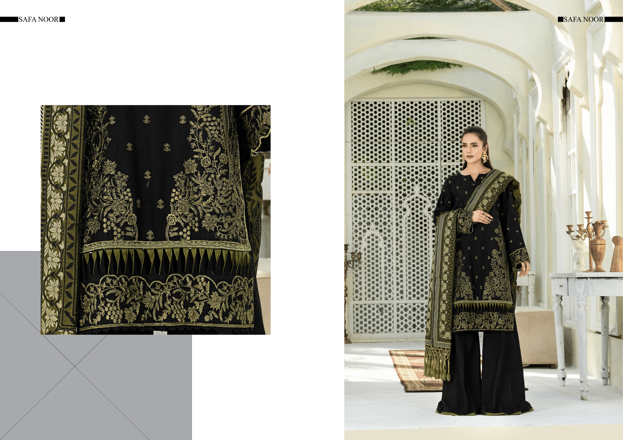 Experience timeless elegance with our Black & Olive Luxury Embroidered Warm Slub 3-Piece Suit, crafted to make your winter wardrobe truly unforgettable. This sophisticated ensemble blends rich texture, intricate detailing, and premium craftsmanship — perfect for festive gatherings, winter dinners, and special occasions.