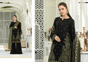 Luxury Embroidered Warm Slub 3-Piece Suit with Premium Jacquard Shawl – Winter Festive Collection