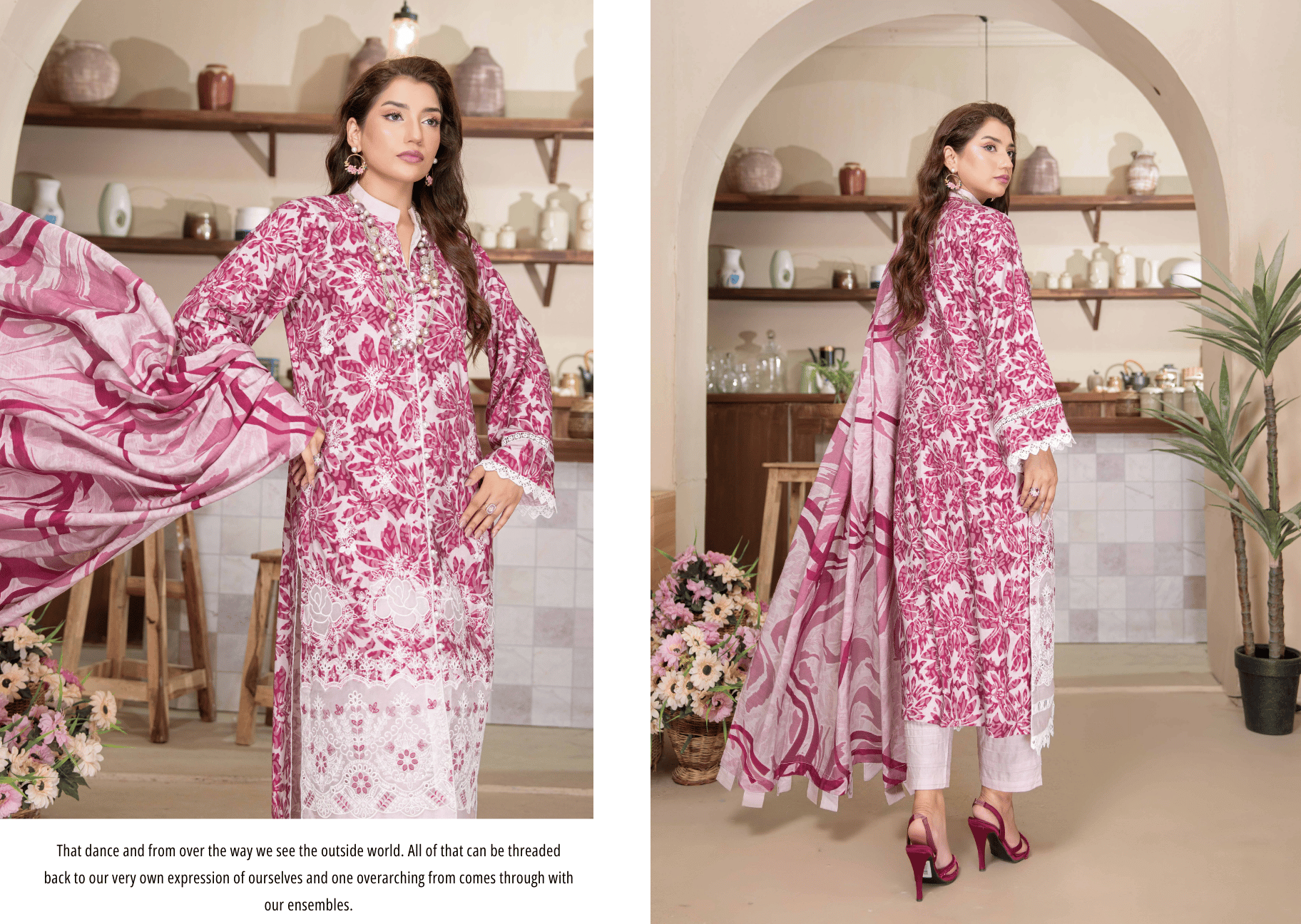 The Vibe Soft, dreamy, and full of life. The digital print features a cascading floral design in shades of berry, pink, and mauve. It’s a "happy" outfit—one that brightens up the room the moment you walk in. Whether for a daytime wedding or a festive lunch, this suit ensures you look effortlessly polished.