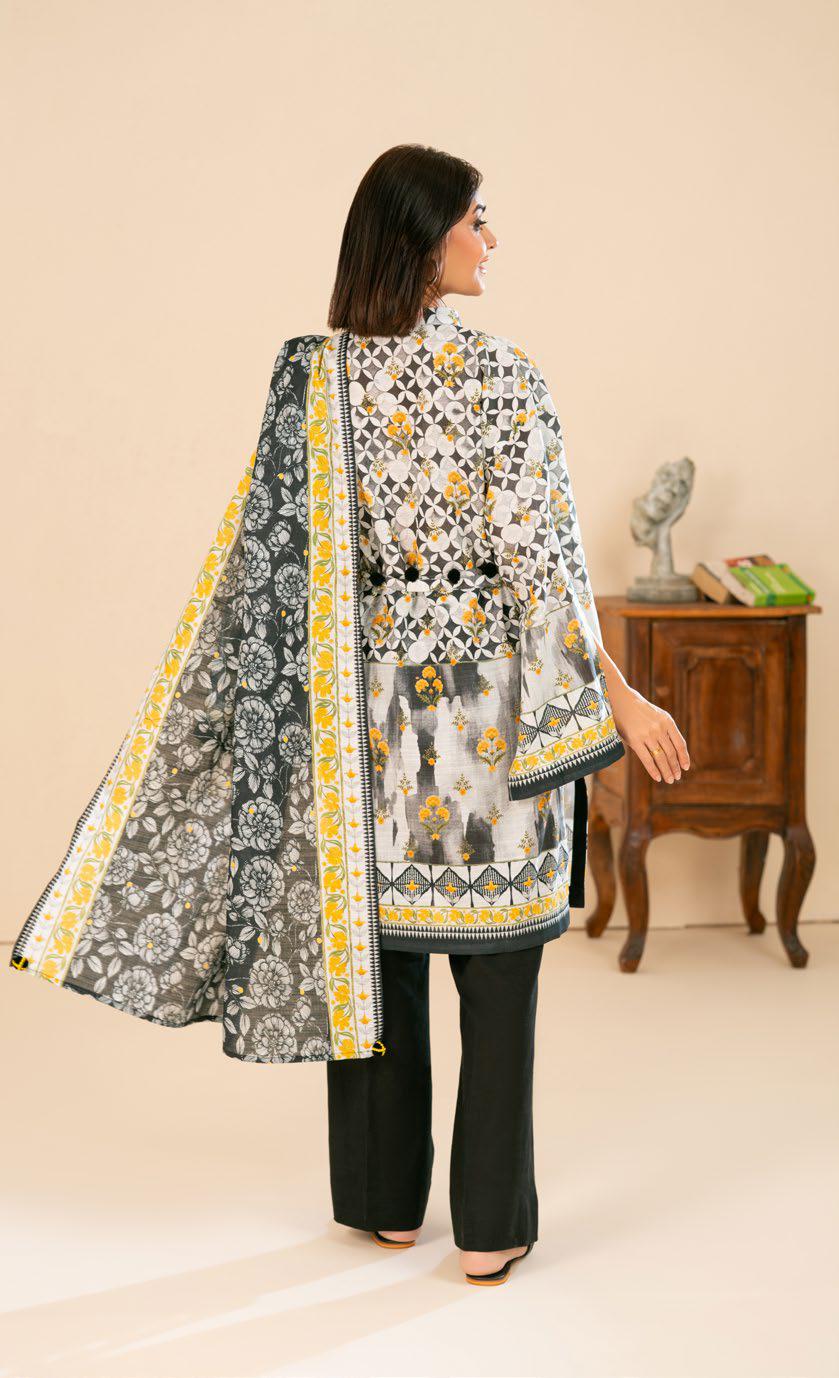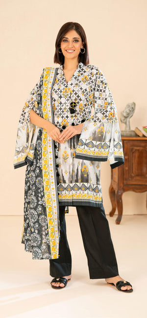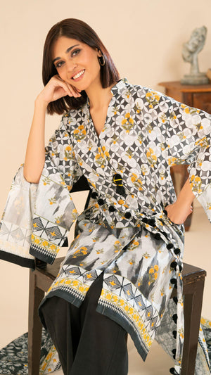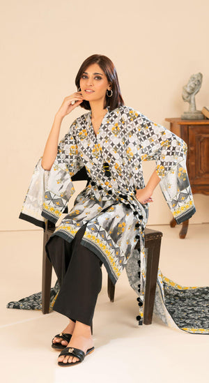 Monochrome and Mustard Printed Khaddar 3-Piece Unstitched Suit | Winter Collection