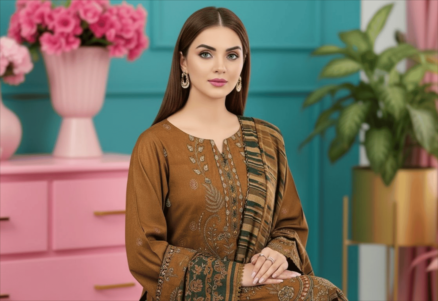 Step into a world of effortless elegance with this Orchid Premium Dhanak Jacquard Unstitched 3-Piece Suit, proudly brought to you by Nagi Collections. Crafted in Pakistan with exceptional detail, this ensemble is designed for women who appreciate refined fashion, comfort, and timeless charm.