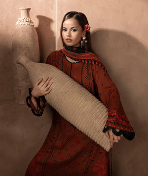 Crafted from luxurious Twill Marina fabric, this suit blends feather-soft drape with a premium finish that flatters every silhouette. Each piece is digitally printed with intricate motifs and bold palettes that hold their vibrancy wash after wash. The set includes a beautifully cut kameez, comfortable palazzo/trousers, and an elegantly printed dupatta — styled for both casual daytime wear and elevated evening occasions.