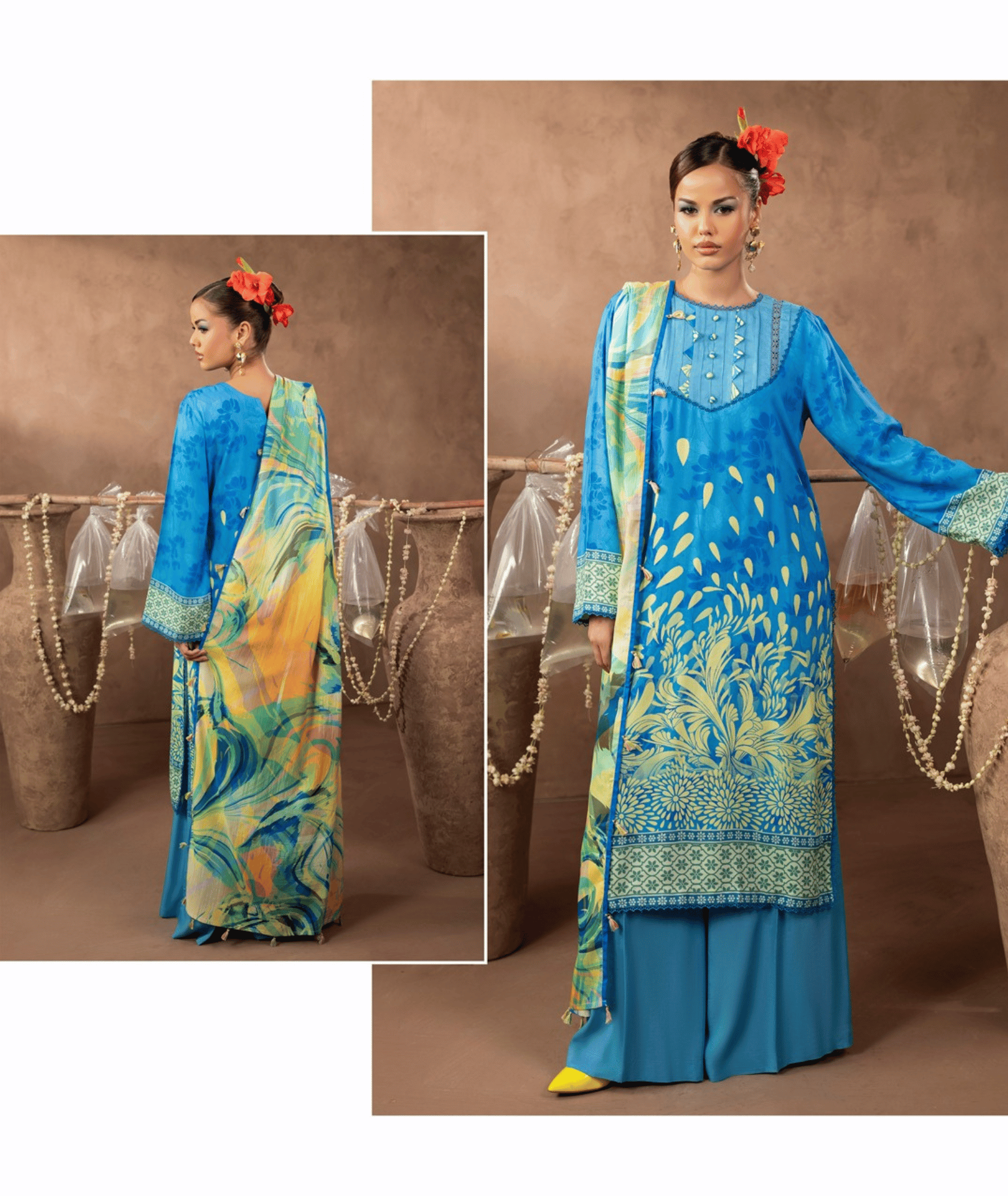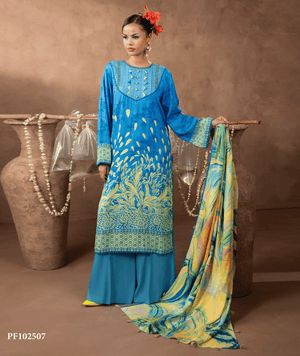 Elevate your everyday elegance with this Premium Twill Marina 3-Piece Printed Suit from Nagi Collections — a flawless union of vibrant design, premium fabric, and effortless comfort. Crafted in Pakistan with meticulous attention to detail, this luxurious suit features a beautifully printed Twill Marina shirt, a coordinating printed dupatta and matching trouser — all designed for the modern woman who values style and quality.