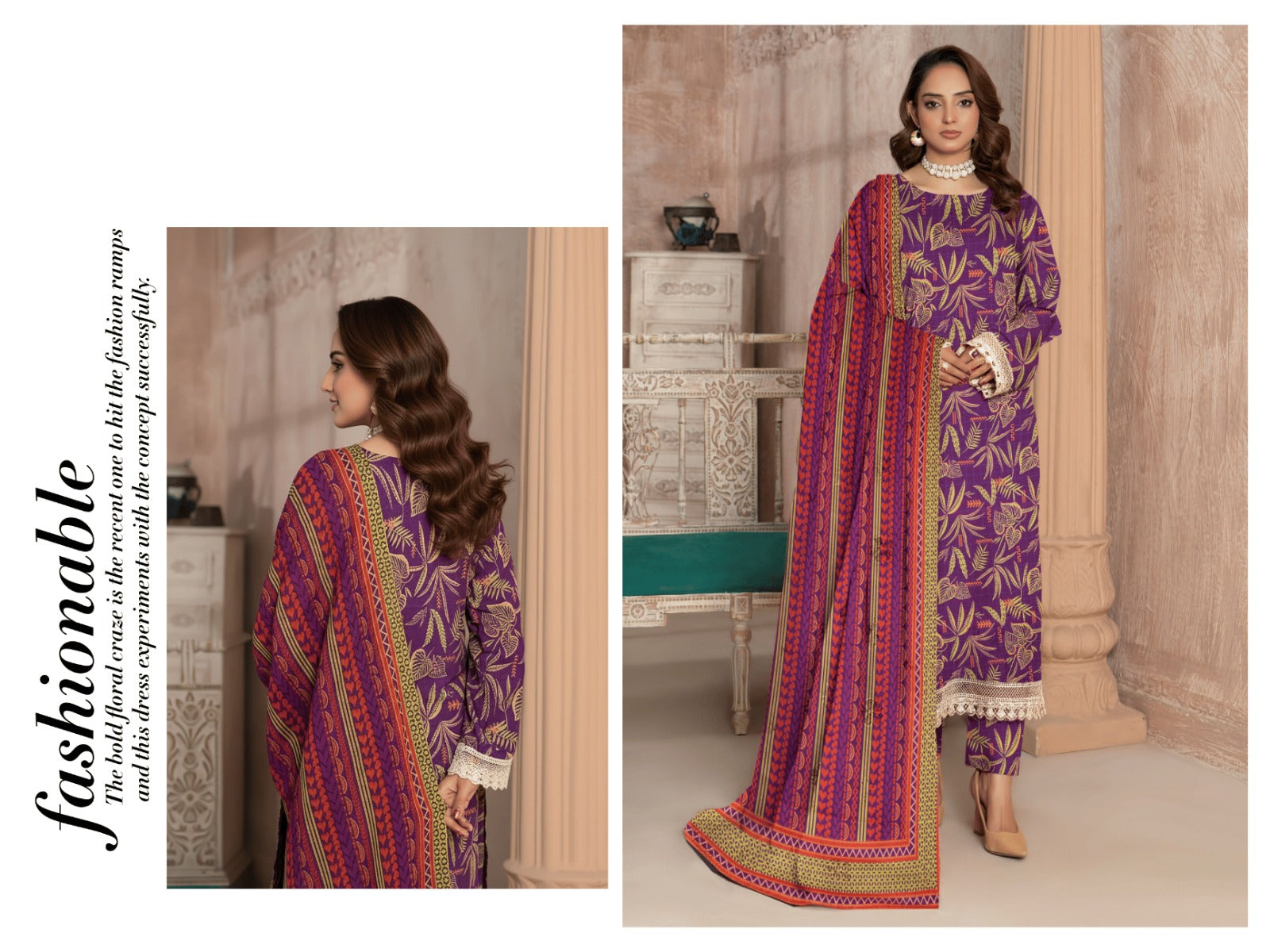 Make a bold style statement with Royal Plum (DE-06). This captivating 3-piece ensemble features a deep, aubergine-purple canvas that exudes sophistication. It is the perfect choice for the woman who wants to add a touch of drama and warmth to her seasonal wardrobe.