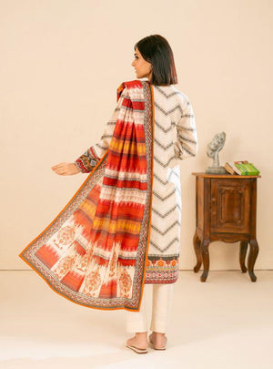 Rustic Charm: 3-Piece Ethnic Fusion Khaddar Suit | Winter Collection