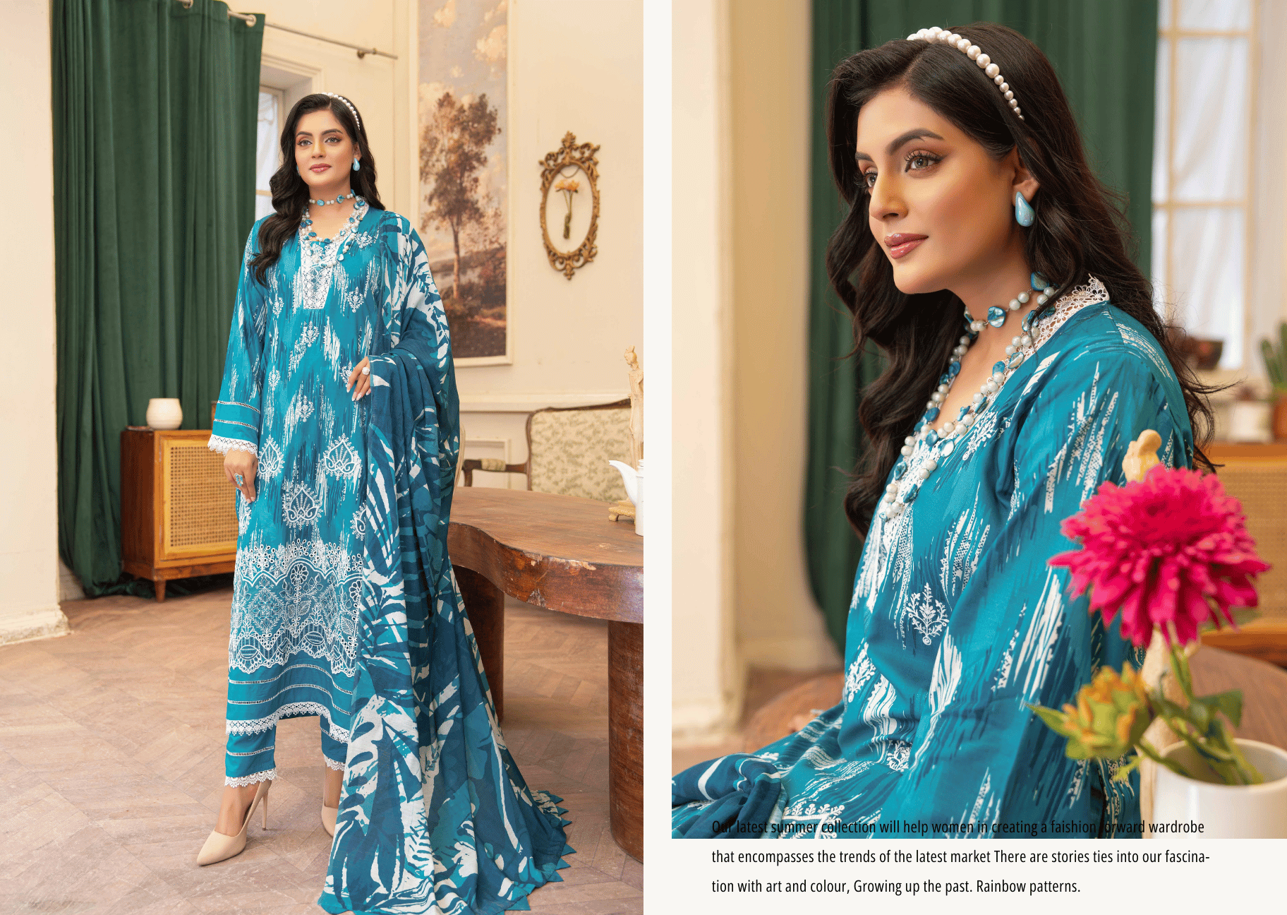 The Vibe Radiate confidence in this stunning shade of teal, accented by intricate white patterns that mimic the serenity of nature. Whether you are attending a daytime brunch or an evening gathering, this ensemble strikes the perfect balance between modern "fashion-forward" trends and traditional grace.