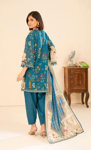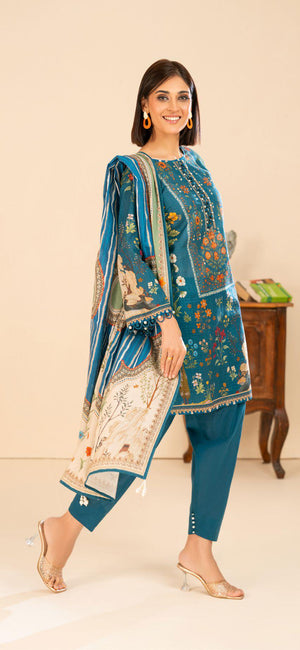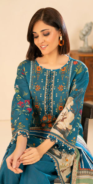 Teal Meadow: 3-Piece Artistic Print Khaddar Suit | Winter Collection