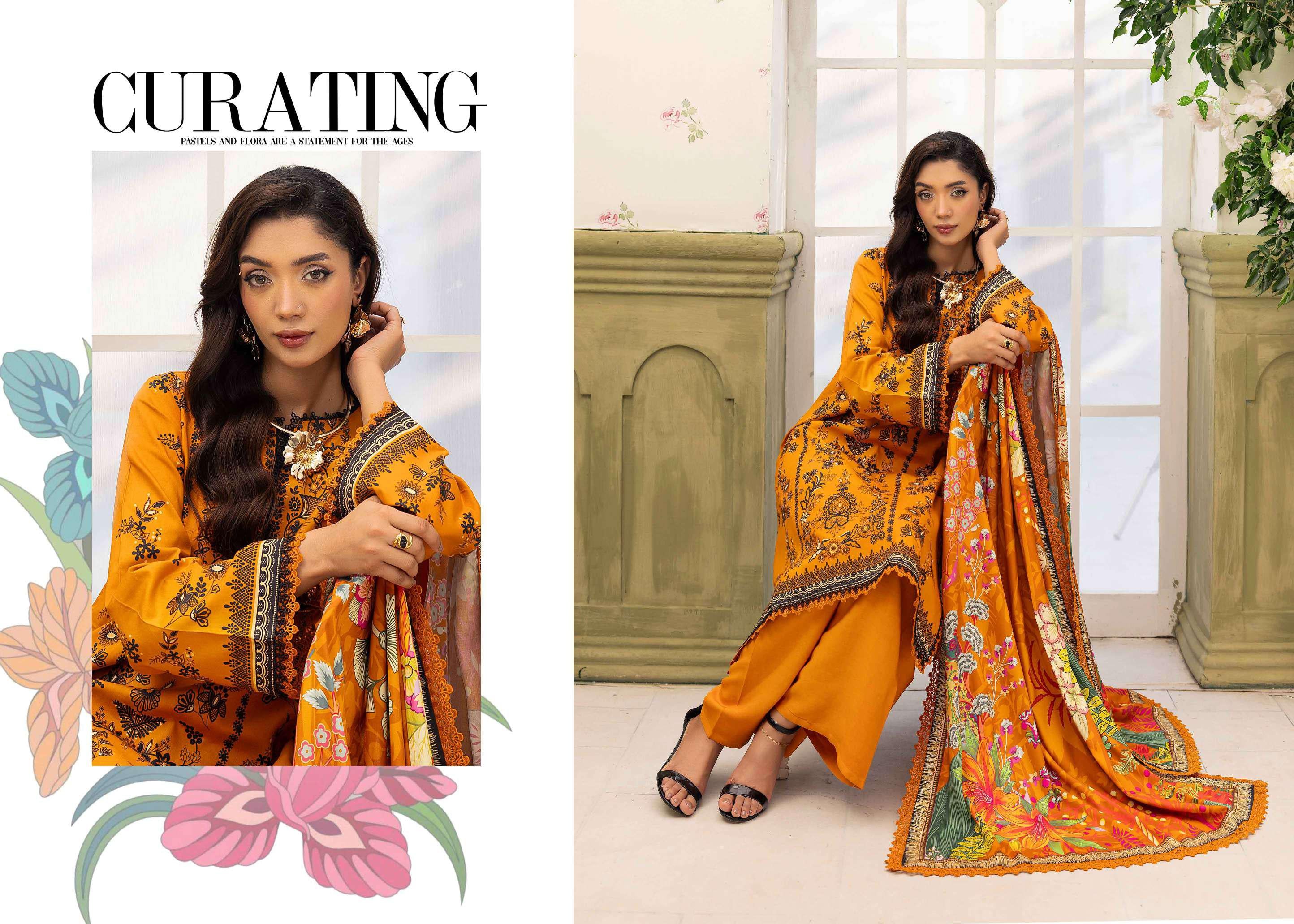 Vibrant Mustard Digital Printed Linen Suit | 3-Piece Floral Winter Dress | Premium Pakistani Unstitched Ensemble
